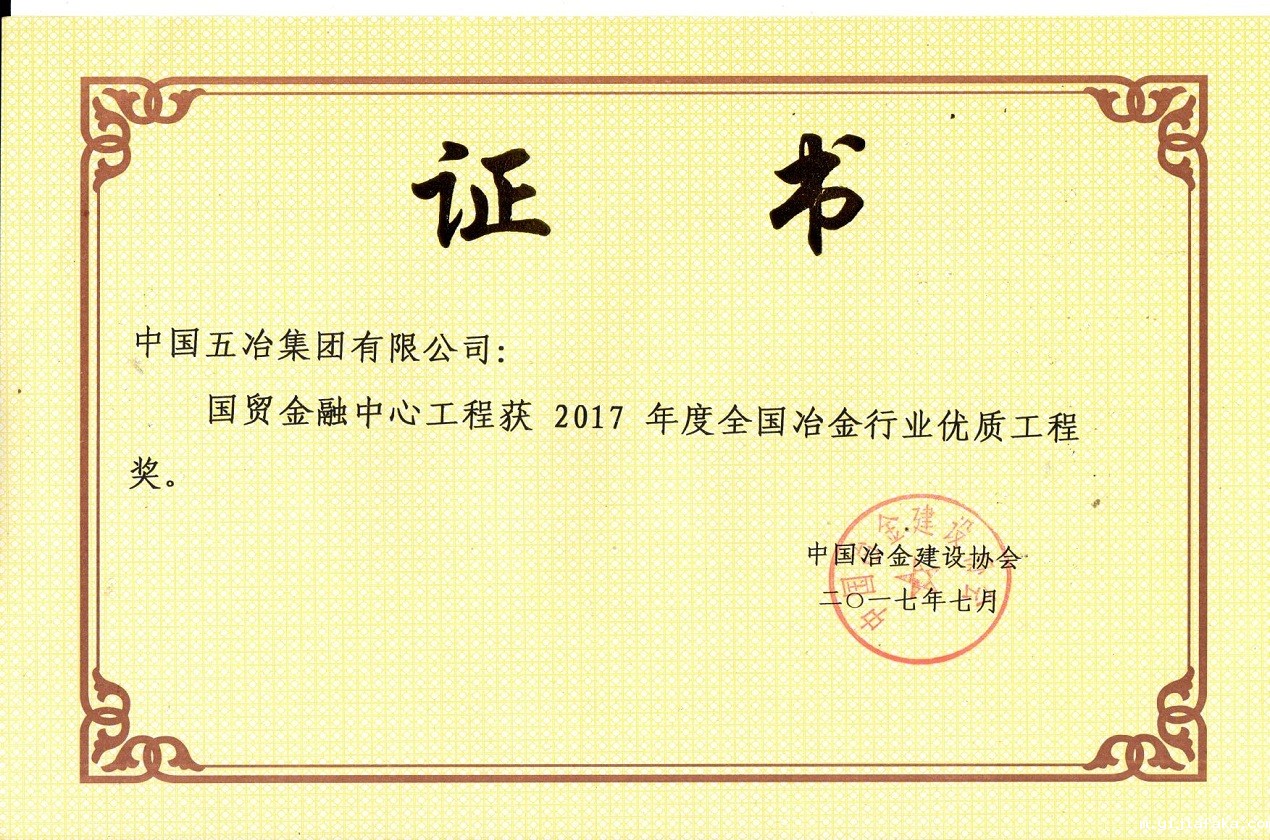 国贸金融中心工程获2017年度全国冶金行业优质工程奖