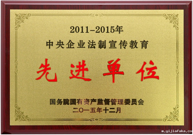 2015年12月,伟德体育手机版荣获2011-2015年度 中央企业法制宣传教育先进单位称号。