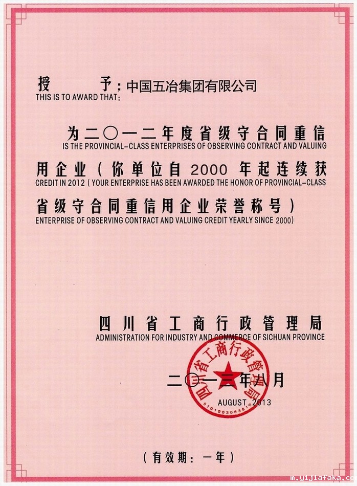 2013年8月,伟德victor荣获2012年度四川省“守合同重信用”企业称号。