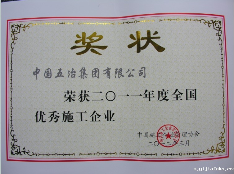 2012年3月,伟德体育手机版荣获2011年度全国优秀施工企业称号。