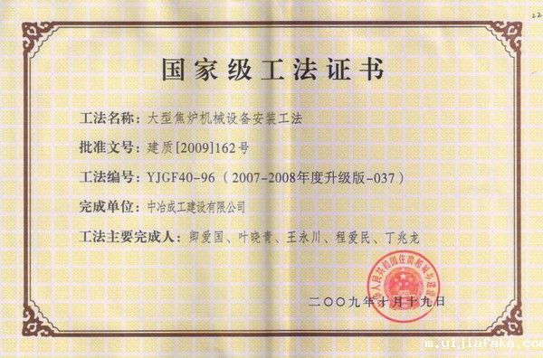 大型焦炉机械设备安装工法YJGF40-96(2007-2008年度升级版-037)