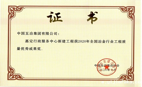 嘉定服务中心项目——2020年全国冶金行业工程质量优秀成果奖