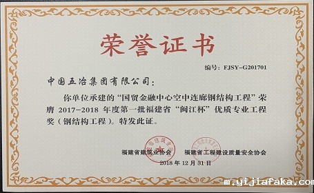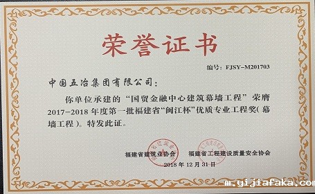 国贸金融中心建筑幕墙工程——2017—2018年度第一批福建省“闽江杯”优质专业工程奖(幕墙工程)