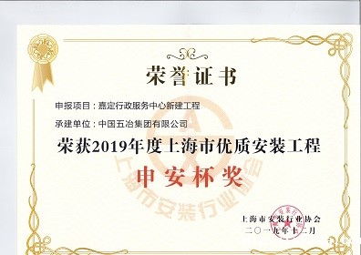 嘉定服务中心项目——2019年上海市优质安装工程“申安杯”奖