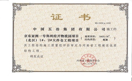 京东亚洲一号郑州经开物流园项目(北区)1#、2#大件仓工程项目——2020年河南省工程建设优质结构工程
