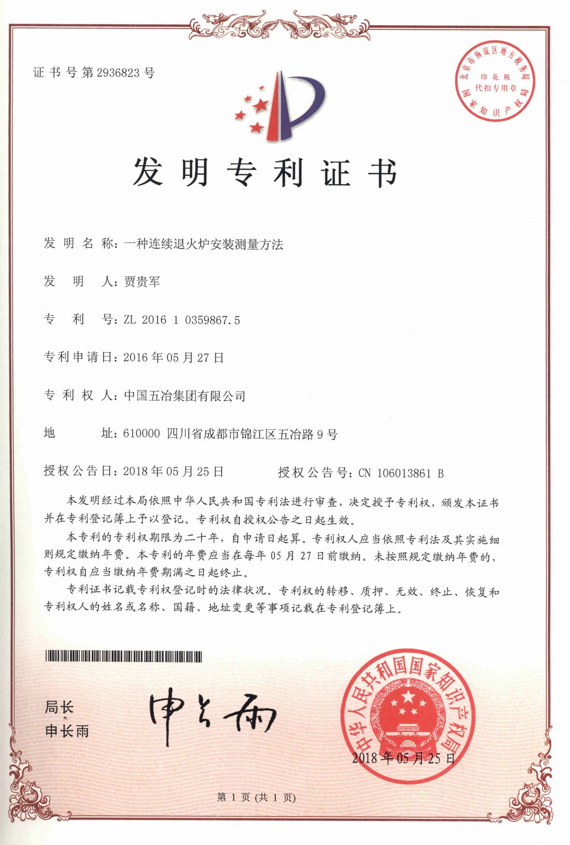 一种连续退火炉安装测量方法 ZL 201610359867.5