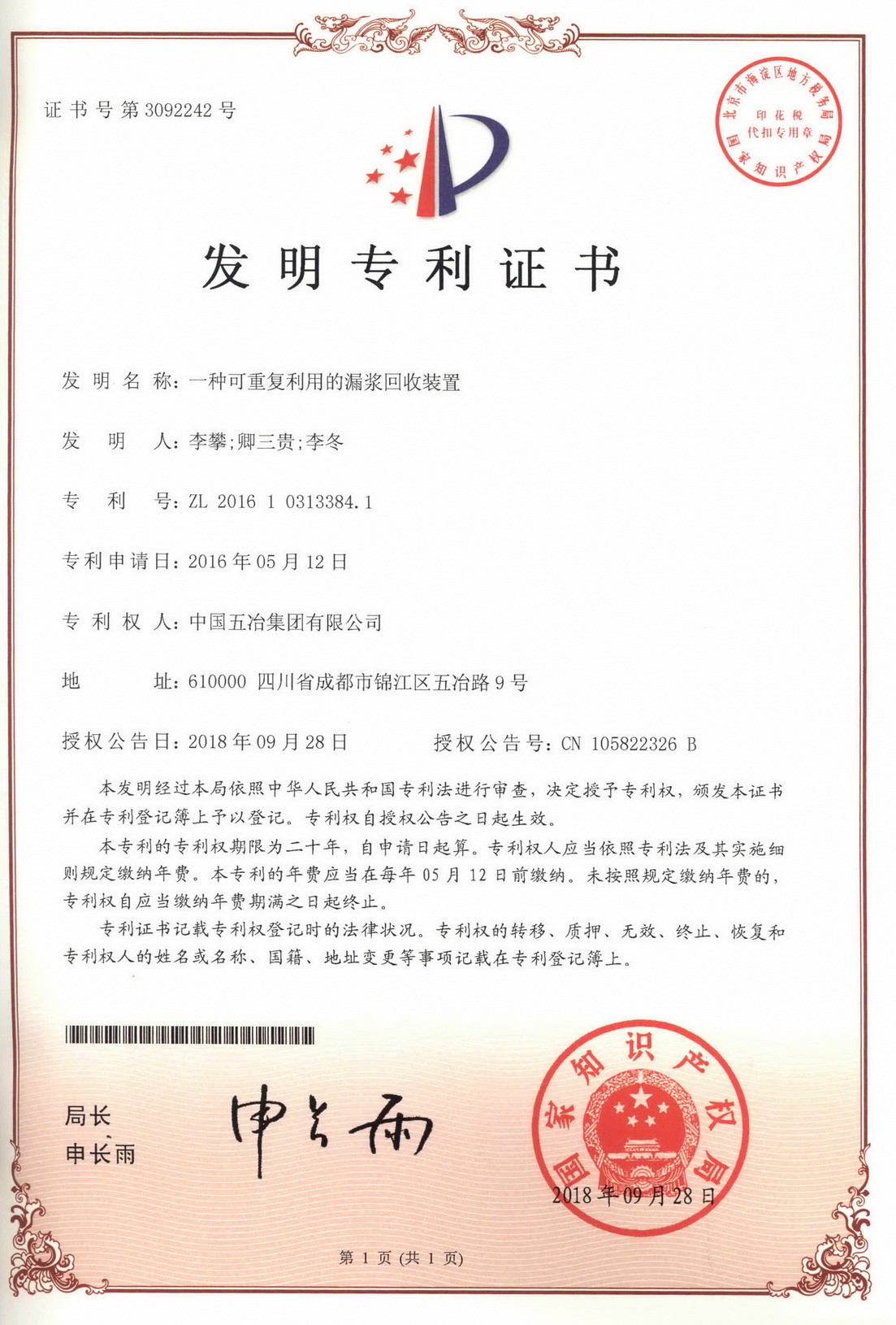 一种可重复利用的漏浆回收装置 ZL 201610313384.1