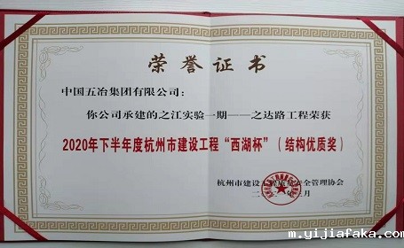 之江实验一期-之达路工程—2020年下半年度杭州市建设工程”西湖杯“(结构优质奖)