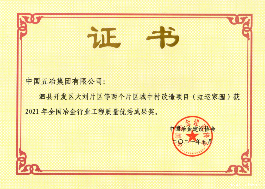 泗县开发区大刘片区等两个片区城中村改造项目(虹运家园)--2021年全国冶金行业工程质量优秀成果奖