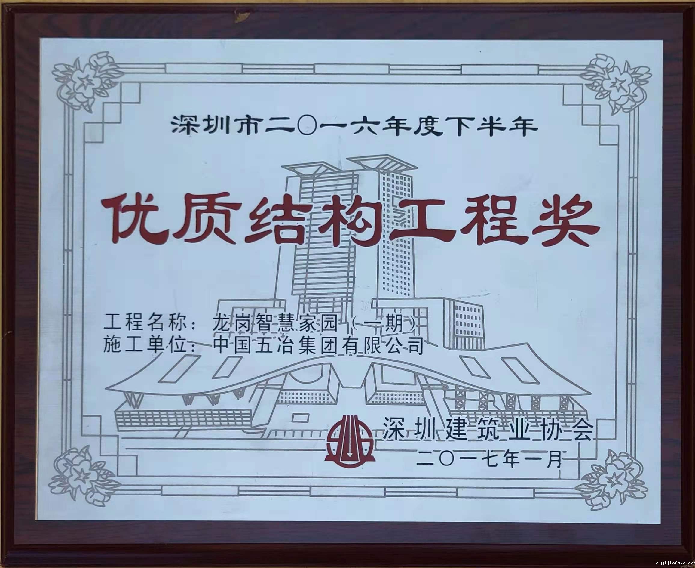 龙岗智慧家园(一期)工程荣获二零一六年度下半年深圳市优质结构工程奖