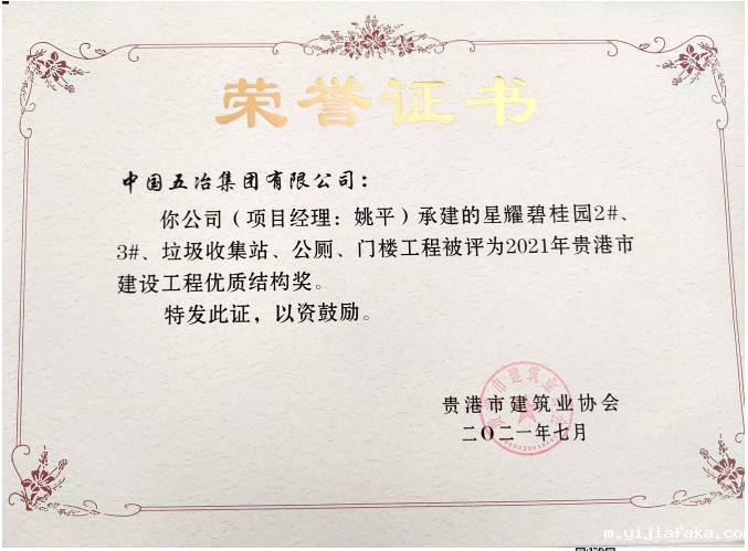 星耀碧桂园2#、3#、垃圾收集站、公厕、门楼工程—2021年贵港市建设工程优质结构奖