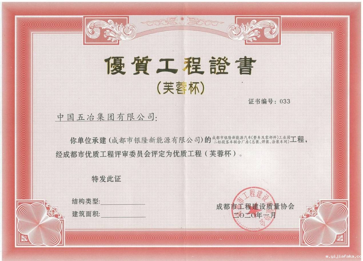 成都市银隆新能源汽车(整车及零部件)工业园二标段客车联合厂房(总装、焊装、涂装车间)项目-2019年度芙蓉杯