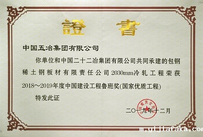 包钢稀土钢板材有限责任公司2030mm冷轧工程——2018~2019年度鲁班奖