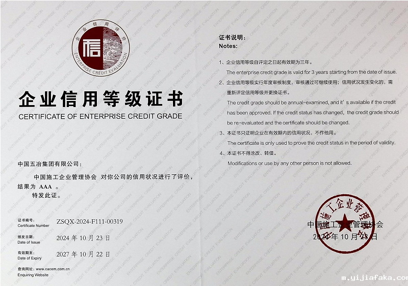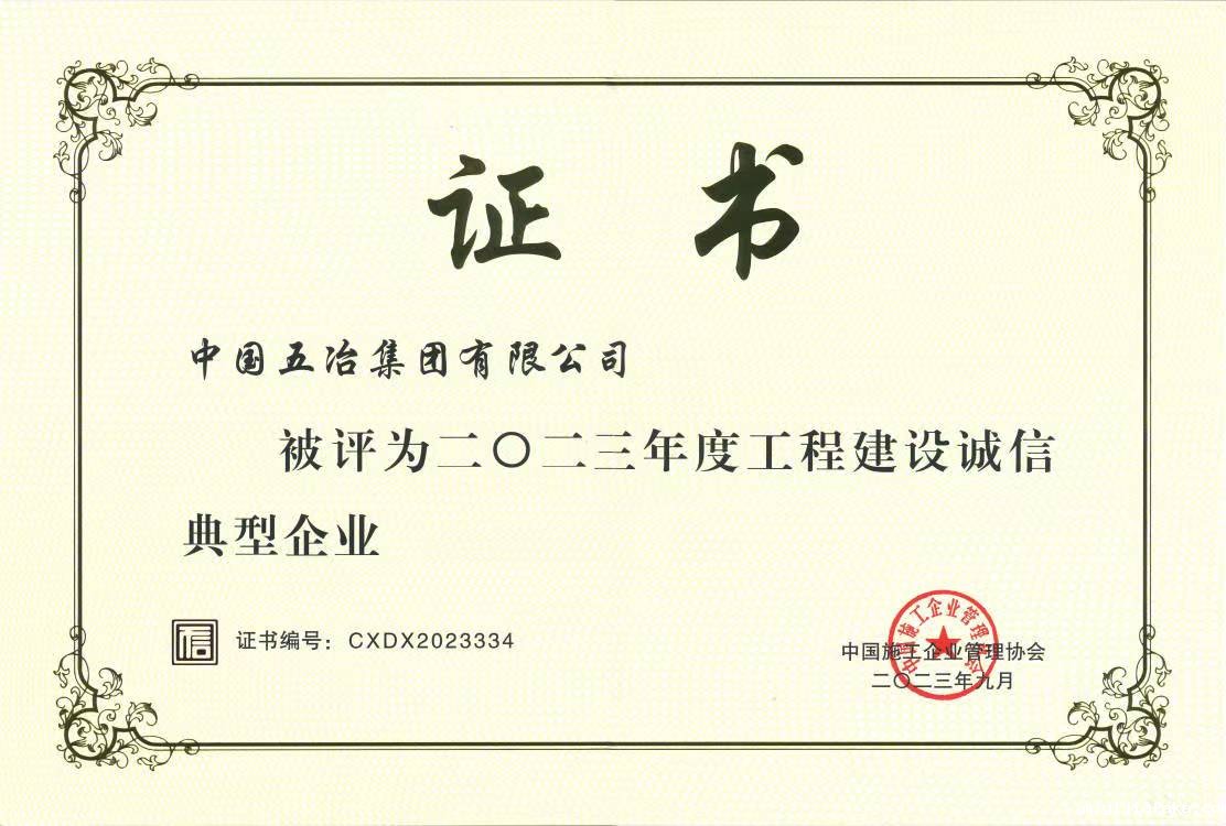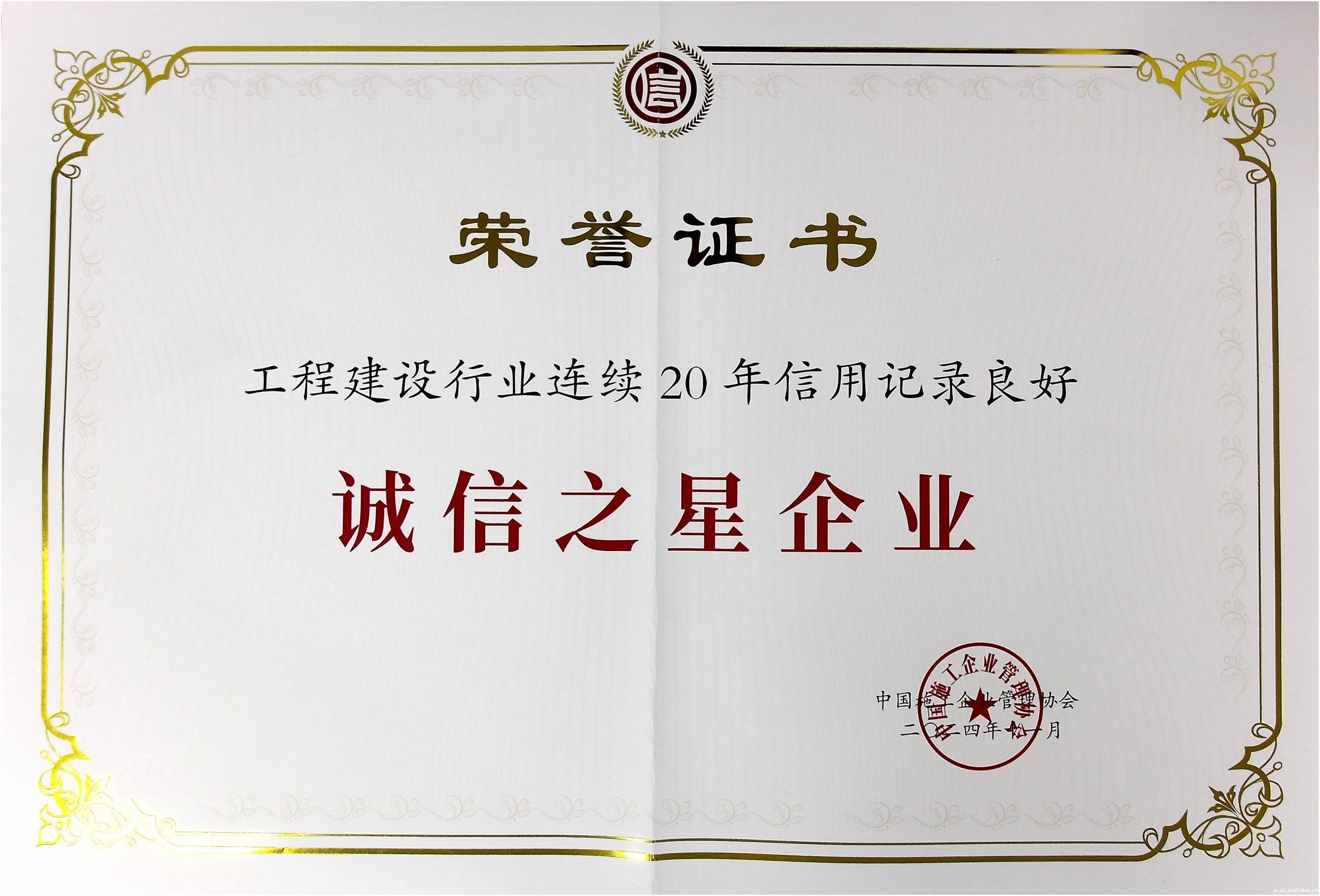 中国工程建设行业连续20年信用记录良好诚信之星企业
