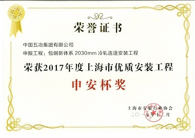 包钢新体系2030mm冷轧连退安装工程-2017年度上海市优质安装工程申安杯奖