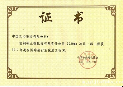 包钢稀土钢板材有限责任公司2030mm冷轧一部工程-2017年度全国冶金行业优质工程奖