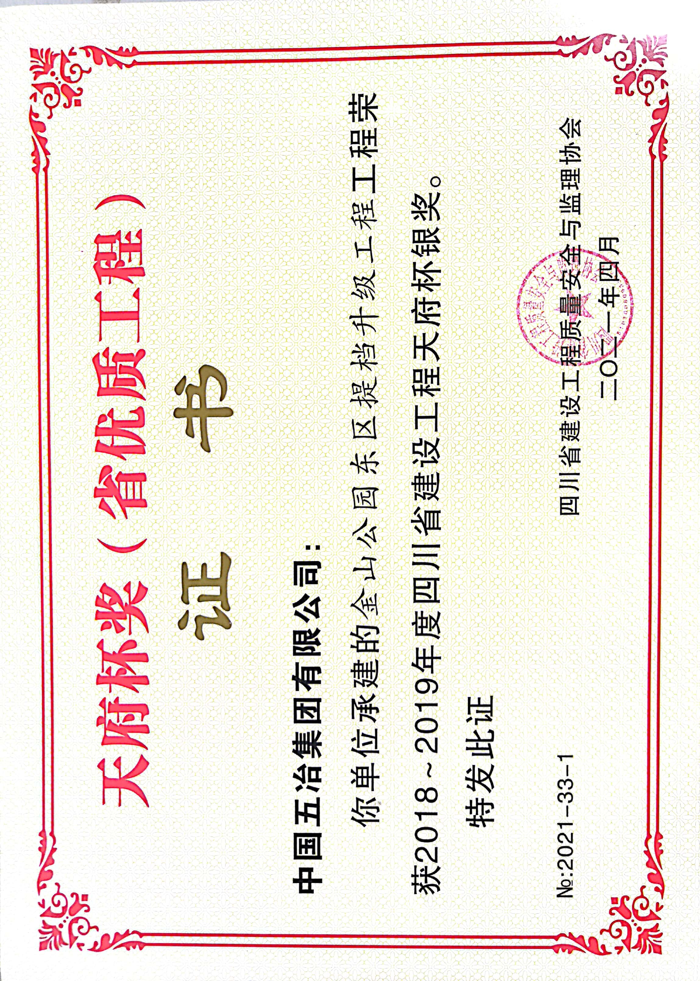 金山公园东区提档升级工程-2018~2019年度四川省建设工程天府杯银奖