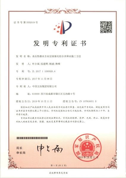 承压性潜水含水层深基坑组合井降水施工方法 ZL2017110909264