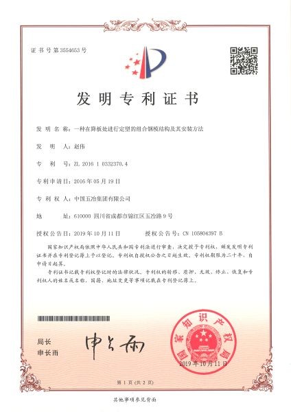 一种在降板处进行定型的组合钢模结构及其安装方法 ZL2016103323704