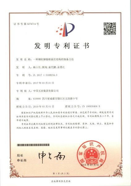 一种钢柱脚锚栓就位结构的制备方法 ZL2017101682340