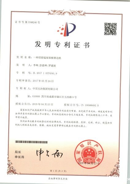 一种铝镁锰屋面板锁边机 ZL201710374341.9